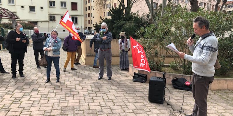 Les communistes varois ont appelé à un rassemblement devant l’ARS de Toulon ce 11 mars 2021 jour anniversaire de la publication de l’OMS déclarant la pandémie le 11 mars 2020.