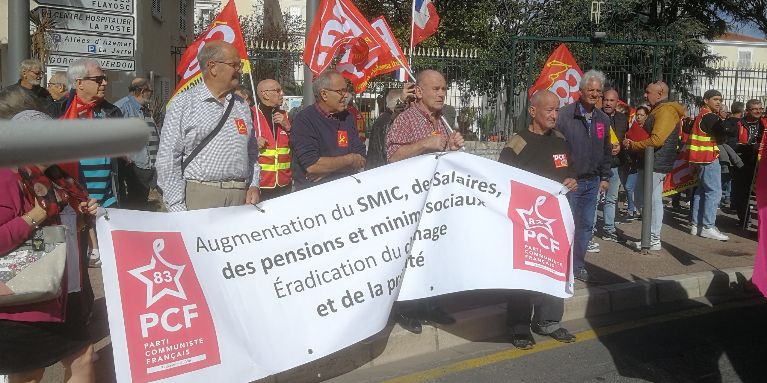 La fédération du Var du PCF appelle les varoise et les varois à manifester massivement demain mardi 18 octobre pour une augmentation des salaires et des pensions. SMIC à 1600 euros net et 2000 euros brut, conférence nationale sur les salaires par branches professionnelles, véritables négociations dans le secteur pétrolier.