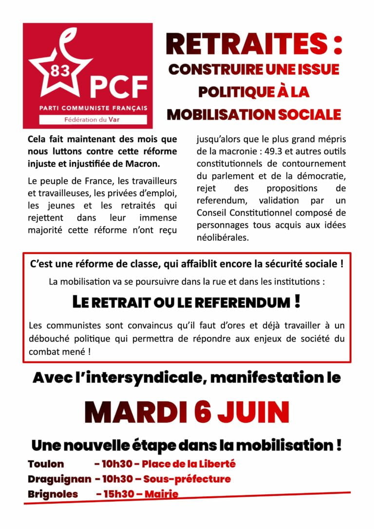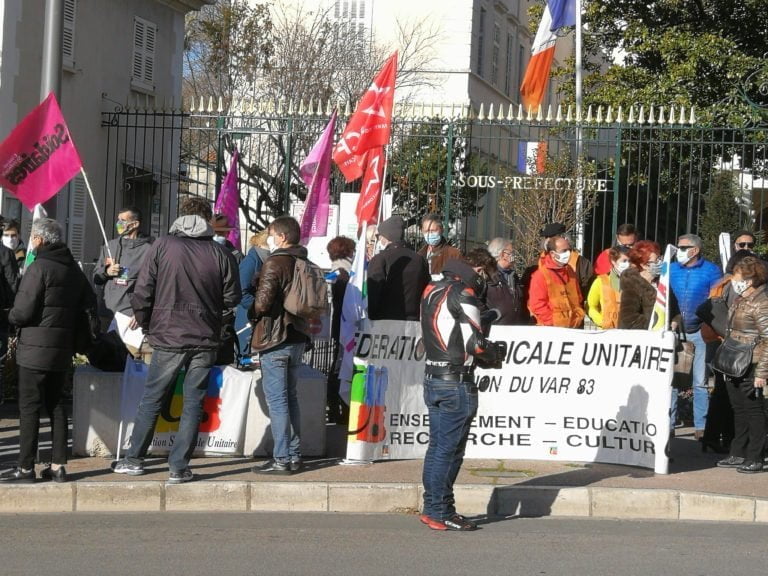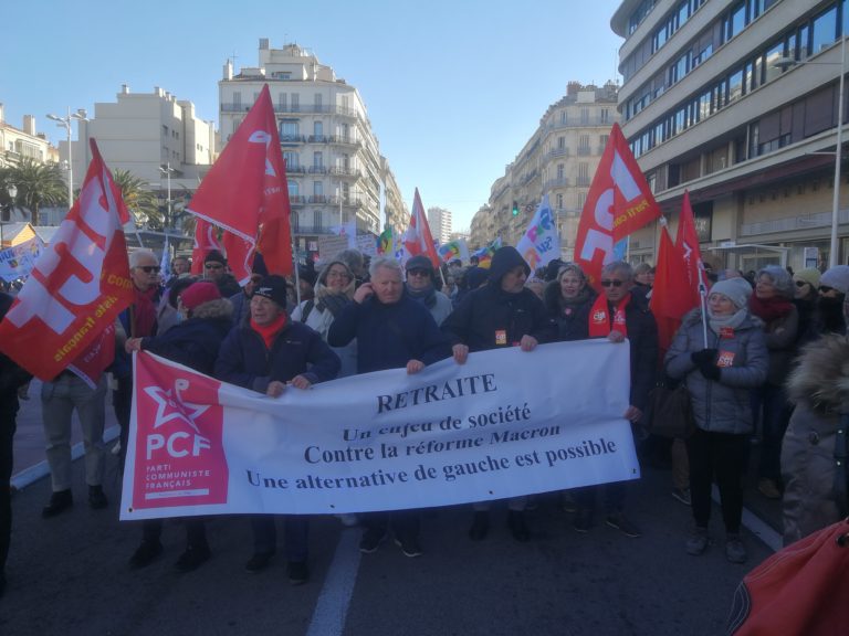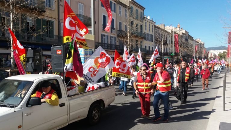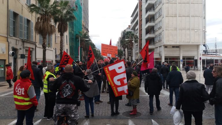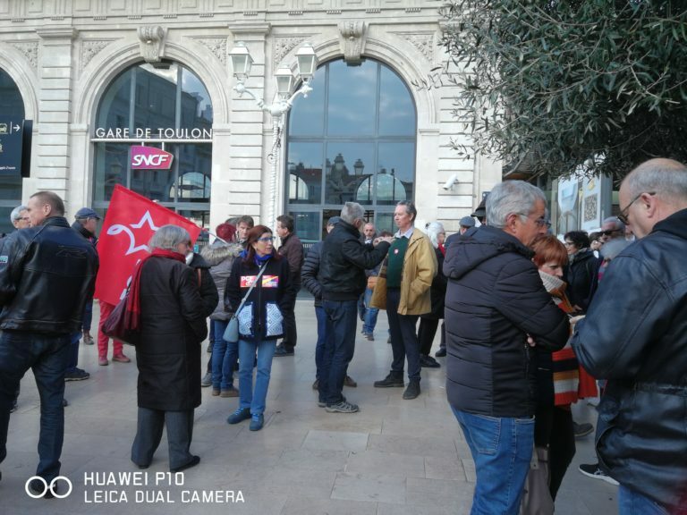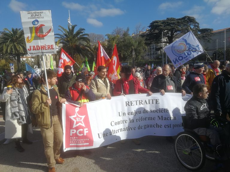 Le jeudi 9 janvier la manifestation toulonnaise a rassemblé 15 000 personnes. Cheminots, personnels de l’arsenal, hospitaliers, enseignants, agents de l’Etat (finances publiques et DDTM), …La protestation gagne aussi les avocats, les kinés, les infirmières,… Les militants communistes nombreux ont distribué 2500 tracts au départ de la manifestation place d’armes, avec leurs banderoles demandant la taxation des revenus financiers des entreprises à la même hauteur que les salaires (10,5 %). Le 10 janvier l’intersyndicale de Draguignan a tenu un rassemblement place Cassin pour infomer les passants des dangers de cette réforme Le samedi 11 janvier manifestation de 3 000 personnes…