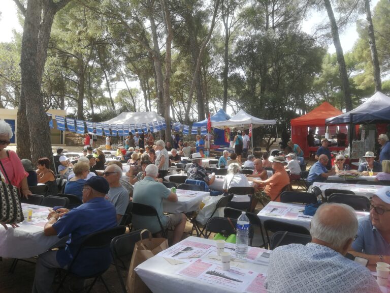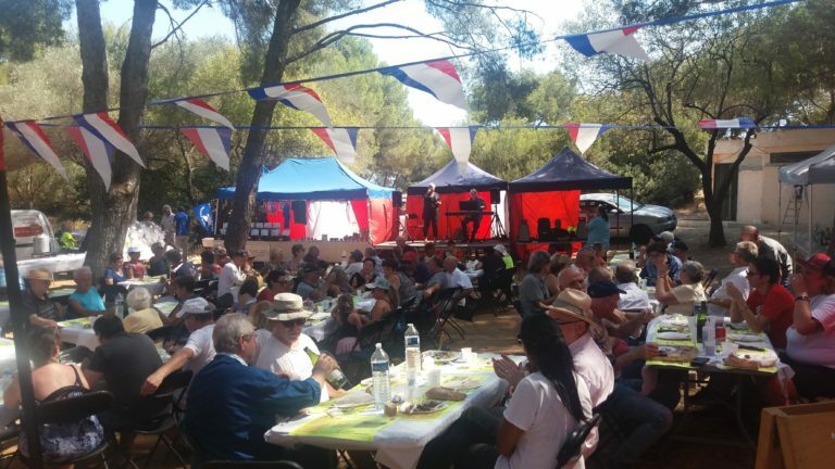 Encore une fois les militants de l’Ouest Var ont réuni plus de 250 personnes à leur traditionnelle fête de la CRIDE. Un très beau temps même chaud tout la journée sous cette magnifique pinède pour se détendre, manger un bon aïoli, débattre de politique, faire un concours de pétanque, écouter de la bonne musique engagée, acheter des livres au stand de l’IHS CGT, des objets au Secours populaire, ou stand de VPJM, varois pour la paix en méditerranée, se documenter auprès du collectif migrants, écouter le témoignage des personnels du centre des Oiseaux pour traiter les jeunes obèses et goûter…