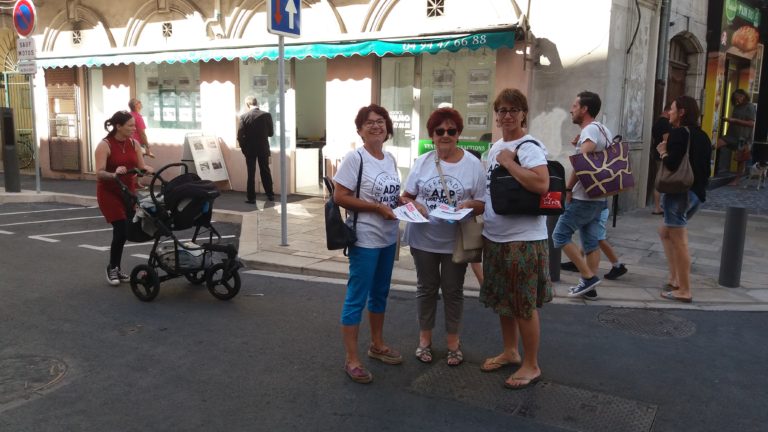 5 camarades de la section ont mené cette action, au cœur des immeubles « Le Castellas à Sollies-Pont 150 tracts distribués dans les boîtes aux lettres, quelques discussions, 15 signatures sur la pétition et une adhésion en perspective (un habitant est reparti avec le bulletin d’adhesion et le formulaire de prélèvement automatique, on doit se revoir).