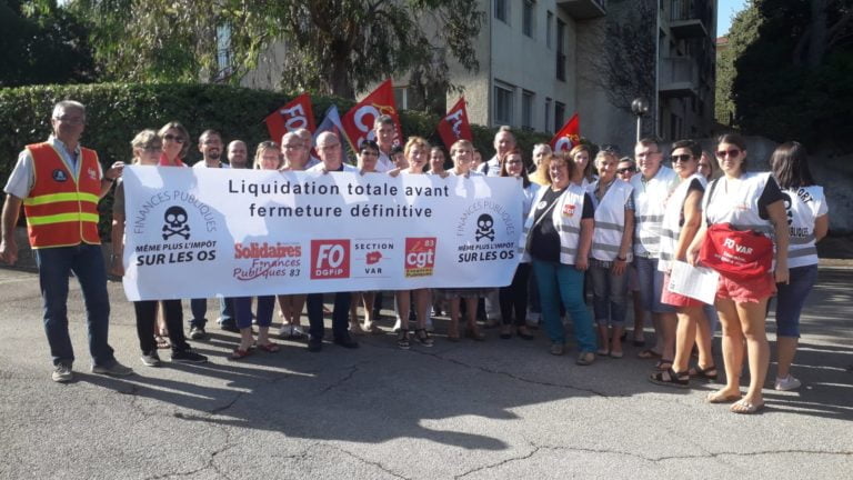 Les cartes départementales du « nouveau réseau » viennent d’être publiées le 14 juin, pas n’importe quand (la veille des vacances) ni par n’importe qui. Le constat est sans appel : le nombre de communes d’implantation passe de 22 à 6 (éventuellement 7). Toutes les trésoreries ferment ! Les SIP (services impôts aux particuliers), les SIE (service impôts aux entreprises), PCE (pôle expertise), les PCRP de Saint-Tropez ferment. Des services de gestion comptable sont implantés à Brignoles, Draguignan, Fréjus, Hyères, Saint-Cyr et Toulon. Les SIP et SIE de Toulon sont explosés. Le plan du ministre macroniste Darmanin prévoit 300 supressions de postes…