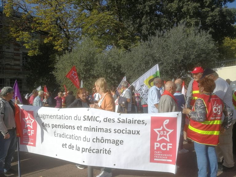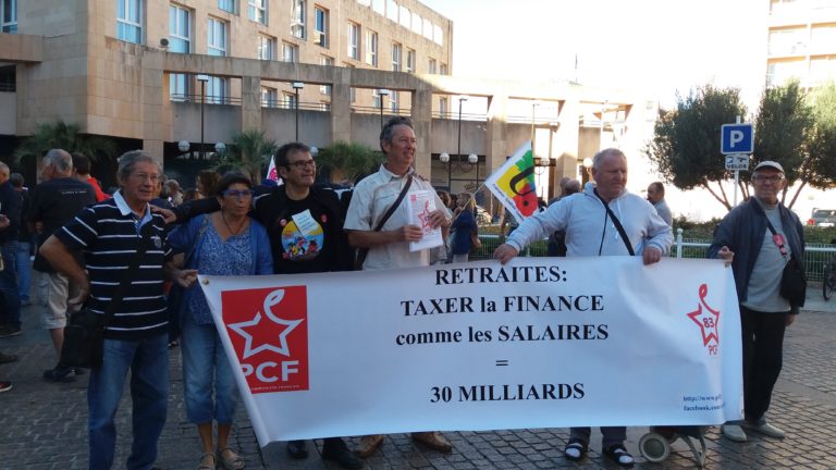 Une nouvelle fois les retraités ont défilé dans les rues de Toulon ce mardi 8 octobre pour défendre le système le système par répartition, la solidarité entre générations, la progression des retraites bien entamées par Macron. Les communistes étaient présents pour discuter du financement : taxer le capital, plus précisément les revenus financiers des entreprises à la même hauteur que les salaires (10,45 %) rapporterait 30 milliards d’euros !