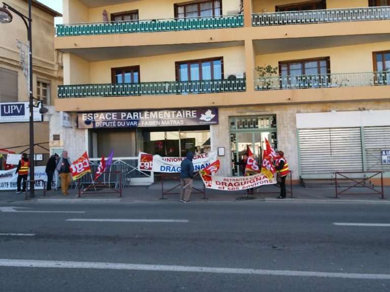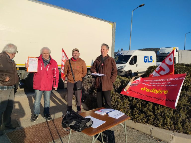 Ce jeudi 20 février de nouveau une manifestation de 250 personnes pour demander le retrait de la réforme Macron/Philippe/Medef sur les retraites. La CGT avait organisé un vote sur le projet de loi devant la sous-préfecture. Les militants communistes ont distribué un tract appelant à signer la pétition pour un référendum à tous les manifestants. Deux adhésions nouvelles ont été enregistrées au PCF Dracénie. L’engagement dans la lutte contre la réforme se traduit par un vent d’adhésions au parti communiste à Draguignan et dans les villages environnants. Il y a en effet nécessité d’une alternative politique.