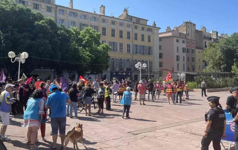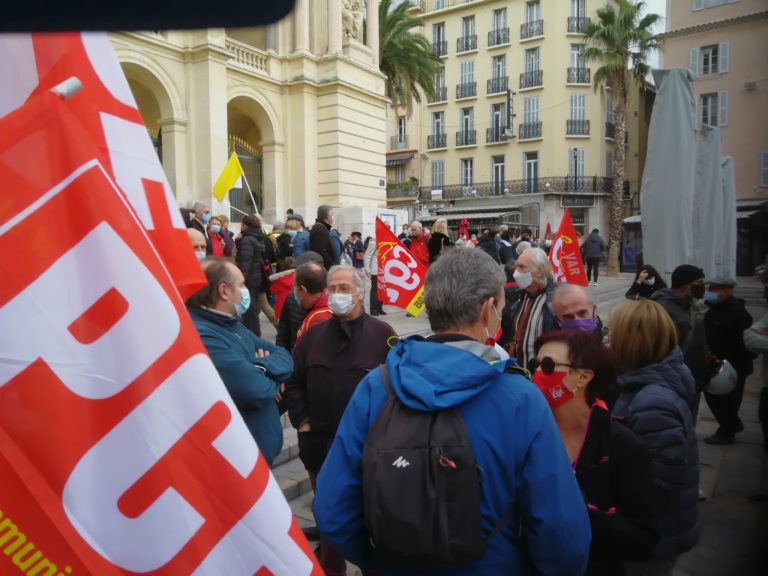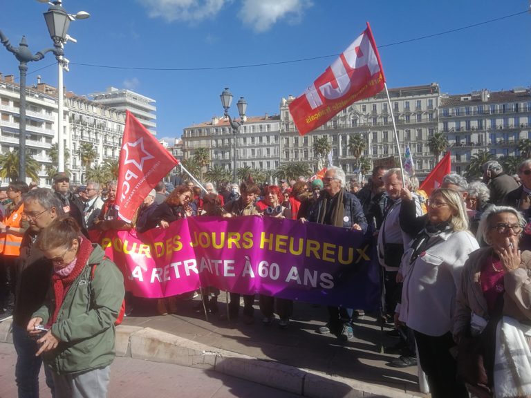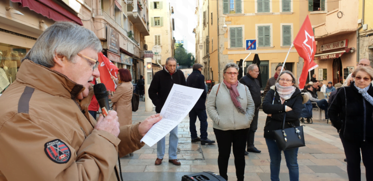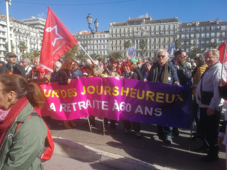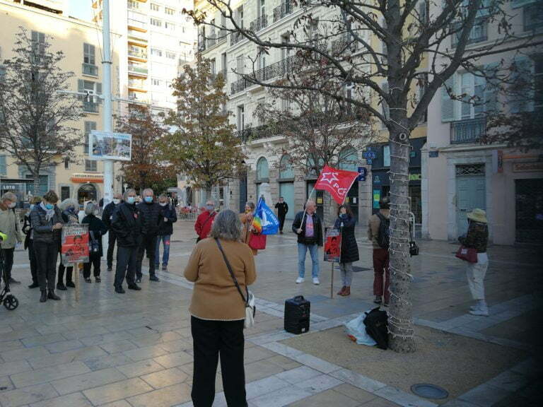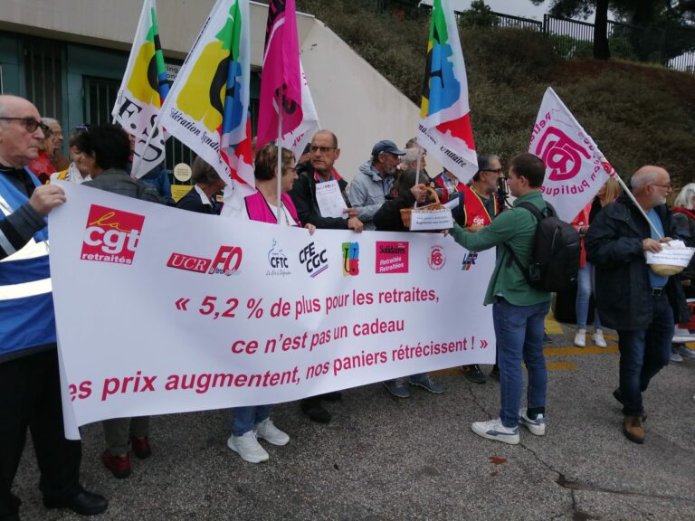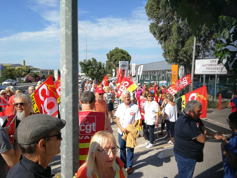 Plusieurs centaines de retraités se sont rassemblés devant la préfecture du Var à Toulon à l’appel des neuf syndicats qui ont mené la lutte contre la loi sur les retraites pour demander une augmentation de 10 % des pensions. Malgré la pluie le rassemblement s’est tenu, une délégation a été reçue par un représentant du Préfet. Tout augmente sauf les salaires et les pensions ! De l’argent pour les retraités plutôt que pour les armes : le budget de la Défense va croître de façon considérable ces prochaines années au détriment des services publics, des salaires de la fonction publique,…