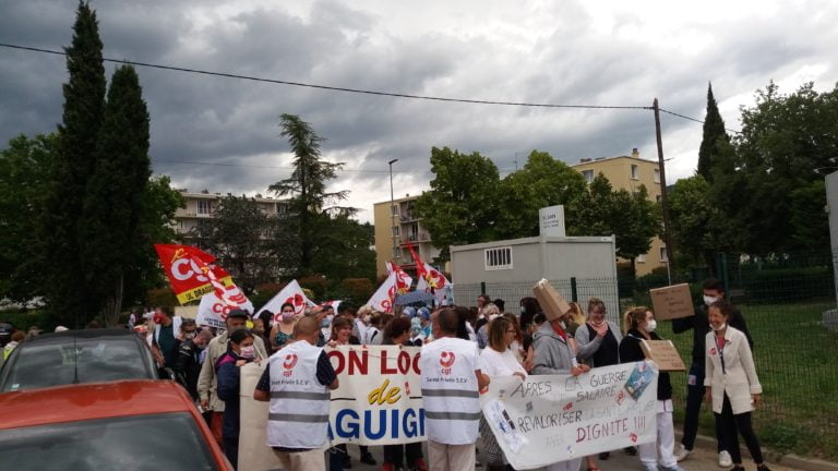 La CGT a lancé aujourd’hui deux appels à des rassemblements dans le Var : à Draguignan devant l’EHPAD du Malmont et à La Garde devant l’hôpital Clémenceau. A Draguignan une soixantaine de personnes se sont mobilisées pour défendre les EHPAD en première ligne face à la pandémie car la plupart des décès dans le Var sont survenus dans les EHPAD. Les deux représentants de la CGT ont procédé à une prise de parole pour dénoncer les conditions déplorables dans lesquelles les soignants ont travaillé. Maintenant il faut une reconnaissance véritable du rôle des soignants : des postes, de meilleurs salaires,…