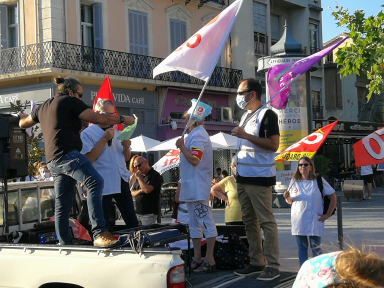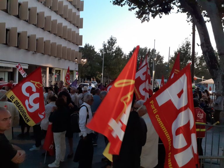 1500 manifestants à Toulon, 500 à Draguignan dans une ambiance combattive. A Draguignan les soignants ont accroché leurs médailles au portail de la sous-préfecture puis le défilé s’est rendu devant le siège du député Madras La République en Marche juste à côté du siège de l’Union patronale ! Le symbole est fort. Plusieurs drapeaux du PCF et présence de dirigeants départementaux et d’un dirigeant national du parti communiste. La question du devenir de la Sécurité sociale est posée : avec l’aide du virus Macron va-t-il s’attaquer encore plus frontalement à cette grande conquête sociale ?