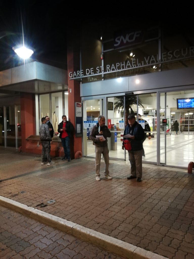 Ce jeudi 19 décembre le cheminot syndicaliste CGT qui avait participé à l’action de blocage du péage du Capitou à Fréjus a été entendu par la gendarmerie du Cannet des Maures (83). 60 militants de la CGT cheminots, santé, énergie,..et des gilets jaunes sont venus soutenir ce militant. Prise de parole de Gérard Battara de l’UL CGT de Draguignan, d’Olivier Masini secrétaire départemental CGT qui a accompagné le cheminot dans la gendarmerie et de Fabrice Angéi secrétaire confédéral. Pierre Daspre secrétaire de la fédération du Var du PCF était présent pour soutenir ce syndicaliste. Vinci autoroute estime le préjudice à…
