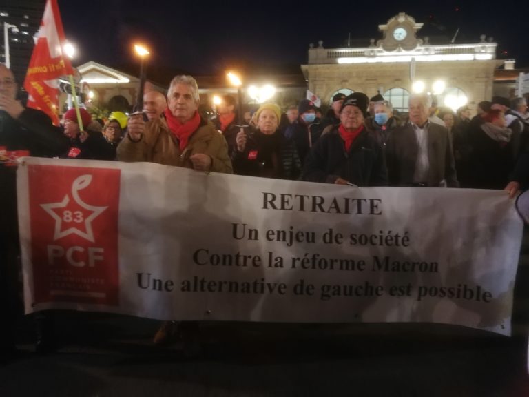 Le jeudi 5 décembre a été marqué par un taux de grévistes très important, une participation massive aux trois manifestations : 700 à Brignoles, 14 000 à Toulon, 2000 à Draguignan. Les communistes étaient présents dans les trois manifestations avec tracts et banderole à Toulon. Le gouvernement est en échec, il essaie de passer en force alors que les grévistes sont nombreux et que l’opinion publique est contre lui. Malgré le déluge de propagande et de mensonges déversés par les médias les Français ont très bien compris que la retraite à points est faite pour baisser les pensions.