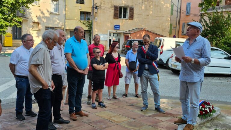 Ce samedi 29 juillet 2023 la section du parti communiste de Brignoles a organisé, comme chaque année, la commémoration de l’assassinat par l’armée allemande, le 29/07/1944 des quatre résistants communistes, le père Jean Mozzone, les deux fils Eugène et Louis et Théorore Linari. Devant les nombreux citoyens réunis, en présence du maire de Brignoles, M. Bremond, du maire de Vins, d’adjoint et conseillers municipaux, de représentants des associations de résistants (ANACR), de dirigeants départementaux du PCF, Pierre Daspre, secrétaire départemental et Pierre Barbagelata, de l’exécutif départemental et de membres de la famille des résistants assassinés, le secrétaire de la section…