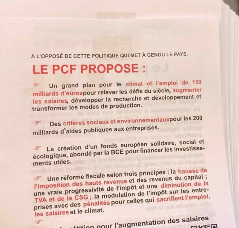 Ce samedi 15 septembre 2023, un quartier qui n’avait pas vu de militants communistes depuis un certain temps a fait un très bon accueil au tract et à la pétition salaires-inflation. De bonnes discussions à poursuivre avec les habitants remontés contre la cherté de la vie.