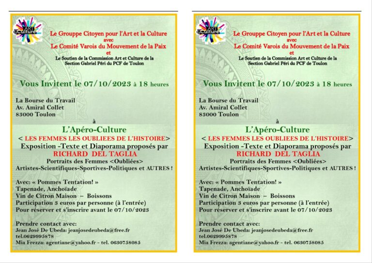 MANIFESTATION SAMEDI 28 OCTOBRE à 15h départ place de l’Opéra à Toulon. Pour les communistes trois choses sont claires. D’une part, les actes commis par le Hamas à l’encontre de la population civile israélienne relèvent d’un terrorisme intolérable et doivent être condamnés. Le Hamas est une organisation islamiste qui ne peut pas être considérée comme une expression du mouvement national de libération palestinien. Il y a nécessité de faire toute la lumière sur les évènements tragiques du 7 octobre 2023, et sur les responsabilités criantes des gouvernements israéliens de droite et d’extrême-droite dans la montée en puissance du Hamas. Le gouvernement…