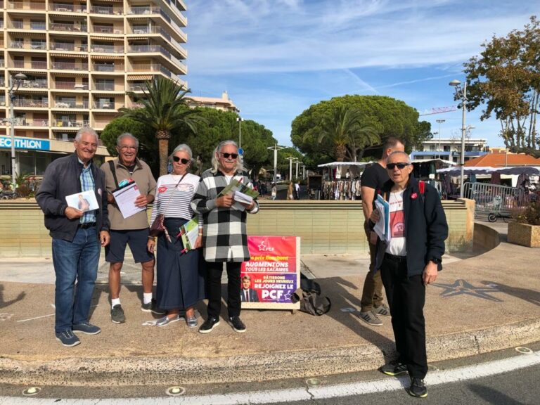 Sept militants communistes de Fréjus et de Saint-Raphaël étaient mobilisés ce dimanche 22 octobre pour faire signer la pétition nationale pour augmenter les salaires et les pensions et indexer les salaires sur l’inflation. Très bon accueil. Très bonnes discussions avec la population. La position des communistes et de Fabien Roussel sur la paix est très appréciée. 146 signatures réalisées. Les habitants saluent la présence des communistes : « cela fait du bien de vous voir » ! Les militants vont poursuivre cette action et les pétitions seront déposées en préfecture pour tout le Var.