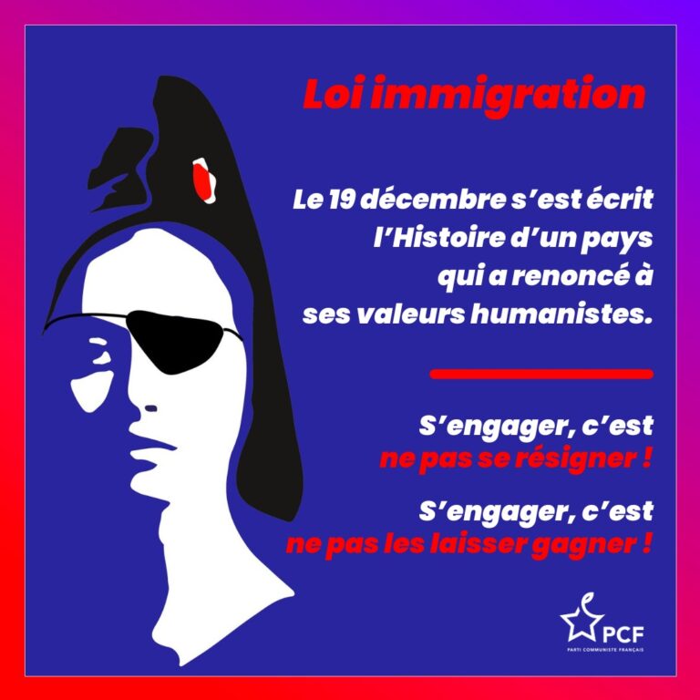 Mercredi 20 décembre – Communiqué de la fédération du Var du PCF concernant le vote de la loi immigration de M. Darmanin La loi immigration dite Darmanin vient d’être votée à l’Assemblée Nationale. Cette loi a fait l’objet de tractations sordides entre le groupe LR et le groupe macroniste à l’Assemblée. Des dispositions d’extrême droite ont ainsi été votées par une majorité de députés mélangeant les votes macronistes, LR et RN. La préférence nationale (chère à Jean-Marie Le Pen et à sa fille), la fin de l’universalité des prestations familiales, le droit aux prestations sociales, de l’allocation adulte handicapée, de…