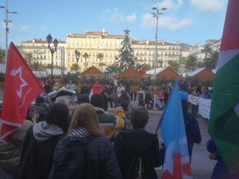 A la Seyne, le vendredi 1er décembre et à Toulon le samedi, 2 décembre, les communistes porteurs d’exigences : 7ème manifestation pour la paix au Proche Orient, en Palestine à Toulon cet après-midi. 250 manifestants déterminés malgré le vent frais. Les militants communistes ont distribué leur tract explicatif demandant l’arrêt immédiat des combats, la libération de Marwan Barghouti et de tous les otages, la fin du blocus de Gaza, la reconnaissance de la Palestine, … STOP AU MASSACRE à GAZA et en CISJORDANIE !