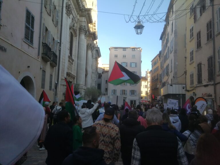 Manifestation SAMEDI 25 novembre à 15 h. Départ Place de l’opéra à Toulon Nous avons condamné avec force les attaques terroristes du Hamas le 7 octobre, nous condamnons avec autant de force la démarche du premier ministre d’extrême droite israélien. Le bilan des bombardements de l’armée israélienne, c’est un véritable massacre en cours avec plus de 13 000 palestiniens tués, dont les deux tiers de femmes et d’enfants. Nous condamnons et luttons contre tous les racismes ! ► Cessez le feu immédiat avec engagement d’un véritable processus de Paix ! ► Libération des otages et des prisonniers politiques dont Marwan Barghouti !…