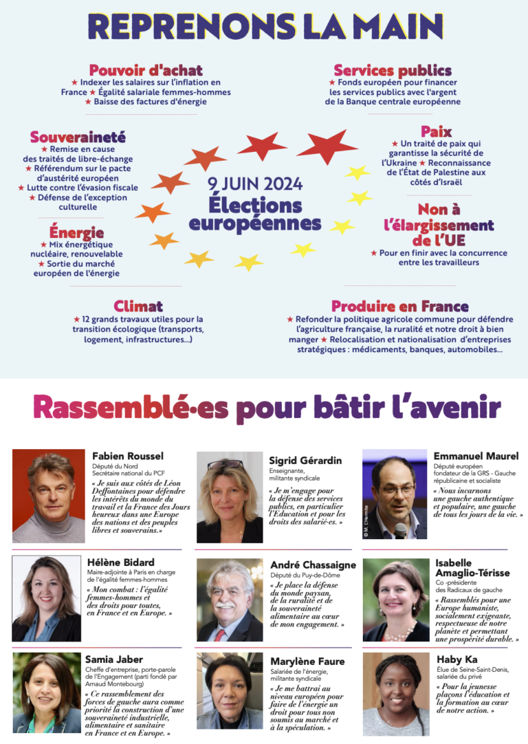 Ensemble, pour le progrès social, la démocratie, la justice climatique, le pain et la paix ! https://www.pcf.fr/ensemble_pour_le_progres_social Faire entendre la voix de la France pour une Europe de peuples libres, souverains et associés. Ensemble, pour le progrès social, la démocratie, la justice climatique, le pain et la paix ! Nous voulons une Europe au service de la démocratie, de la paix, du progrès social et du climat, libérée du poids de la finance et des logiques capitalistes. Force est de constater que l’Union européenne n’a pas su apporter la paix et n’est pas en mesure de relever les défis de l’émancipation sociale,…