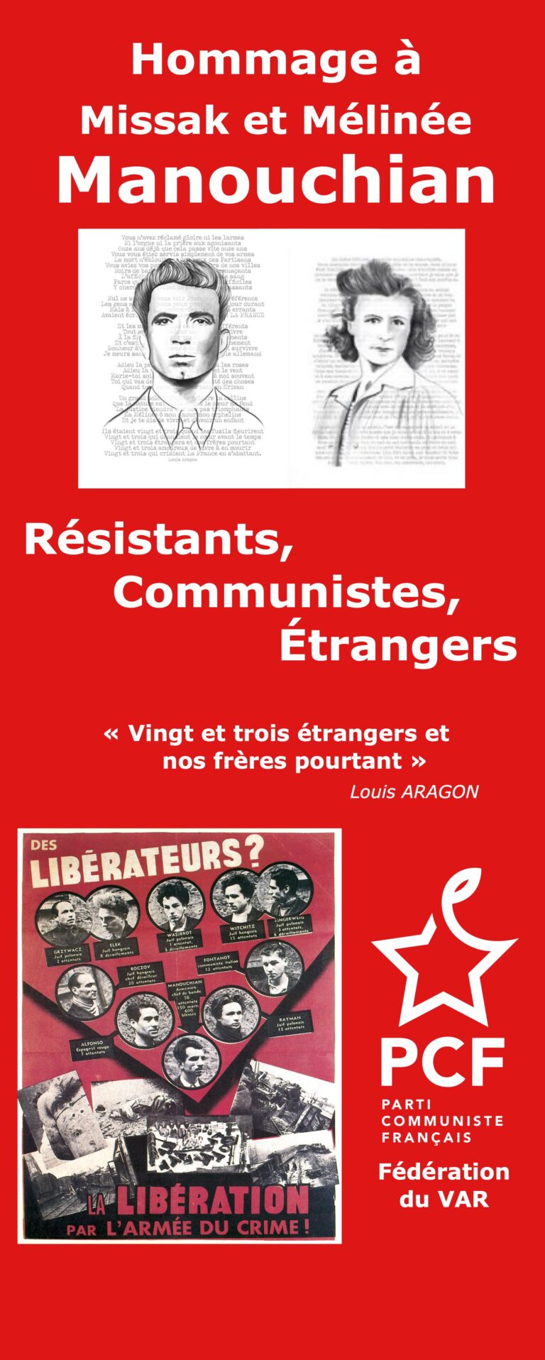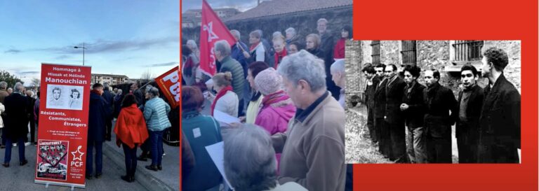 Les militants communistes de la section de la Dracénie ont organisé un très bel hommage à Missak Manouchian ce 21 février 2024, 80 ans après son exécution par les nazis. Le maire de Draguignan invité par les communistes a déposé une gerbe avec la sous-préfète et le conseiller départemental. Les communistes ont déposé une gerbe également ainsi que les représentants de la communauté arménienne. Le secrétaire de la section Philippe Jérôme a rendu un très bel hommage à Missak Manouchian et Jacques Rebière militant communiste descendant d’un résistant communiste fusillé par les nazis a lu la lettre à Mélinée devant…