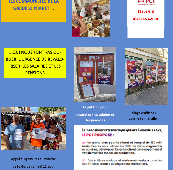 Sept communistes de Solliès-Pont et de La Garde s’étaient déployés, et ont recueilli 74 signatures sur la pétition pour l’augmentation des salaires et des pensions.