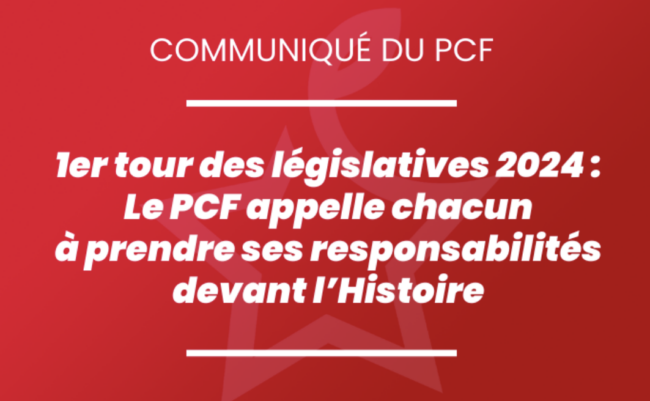 1er tour des législatives 2024 : Le PCF appelle chacun à prendre ses responsabilités devant l’histoire